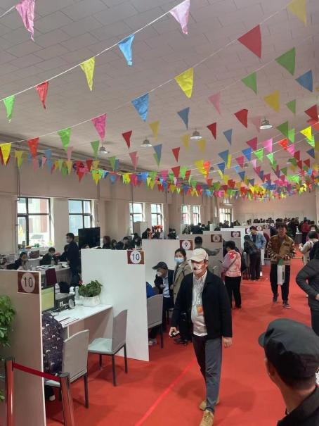 4月23日,回迁安置工作进入村民选房安置期。恒信诚业党支部统筹部署,为助力提速完成村民的安居梦,及时调整选房工作流程,优化环节衔接。选房大厅内设点房区、提交材料区、材料审核区、销控区、等候区、工作人员每日早6点到晚8点持续奋战,最终仅用3天时间高效的完成了约1250套房的选房工作,“跑出”顺义区回迁选房工作历史新速度。