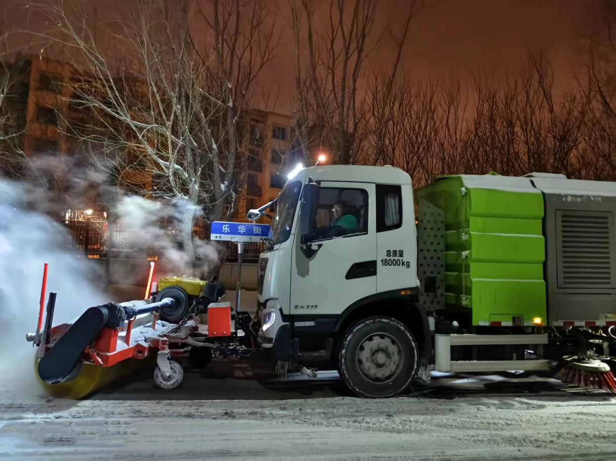大龙控股天房物业公司政务中心项目部、劳动大厦项目部及下属顺通顺畅公司等对辖区各主干道等部位的积雪进行清扫,全力保障人、车出入道路畅通。